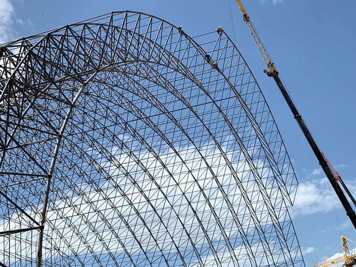 (2)网架加工前应对现场尺寸进行复测,确认无误后方可进行加工、安装;网架制作、运输、安装应遵守《空间网格结构技术规程》JGJ7-2010、《钢网架金昌螺栓球节点》JG/T 10-2009、《钢网架金昌螺栓球节点用高强度螺栓》 GB/T 16939-2016、《金昌钢结构金昌工程金昌施工规范》 GB50755-2012、《金昌钢结构金昌工程施工质量验收标准》 GB50205-2020。
