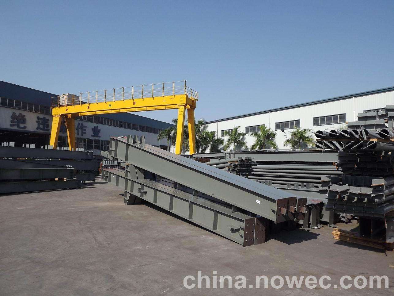 条状单元一般沿长跨方向分割,其宽度约为1~3个网格,其长度为l2或l2/2(l2为短跨跨距)。块状单元一般沿金昌网架平面纵横向分割成矩形或正方形单元。每个单元的重量以现有起重机能胜任为准。条(块)与条(块)之间可以直接拼装,也可空一网格在高空拼装。由于条(块)状单元是在地面拼装,因而高空作业量较高空散装法大为减少,拼装支架也减少很多,又能充分利用现有起重设备,故较经济。这种安装方法适用于分割后网架的钢度和受力状况改变较小的各类中小型网架,如两向正交正放四角锥、正放抽空四角锥等网架。
